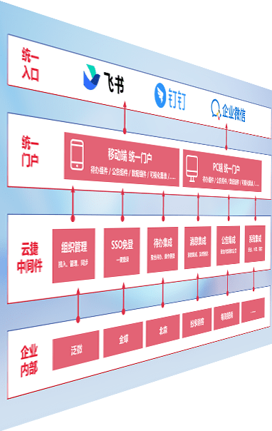 对协作平台提供支持服务,,支持企业应用与协作平台对接,,,包含组织同步、、、消息集成、、待办集成等。。。。支持目前主流的协作平台:钉钉、、、企微和飞书。。。